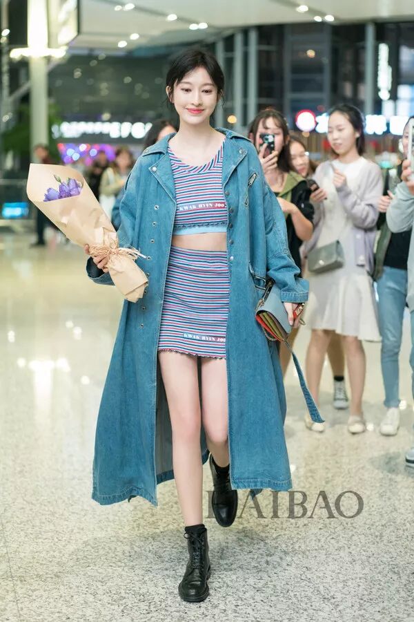 关晓彤、王菊也穿了牛仔短外套,两人的搭配都乱七八糟的。