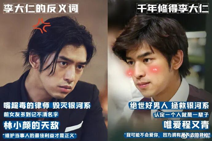 时隔10年重返台剧,他在B站和迪士尼出品的律政轻喜剧《正义的算法》中,饰演了一名毒舌律师刘浪,一举颠覆了《我可能不会爱你》里“千年修得李大仁”的深情好男人形象。