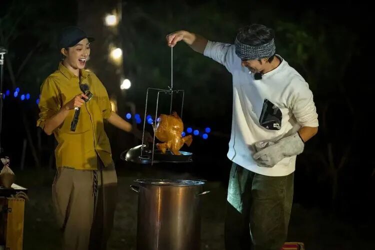 在《极岛森林》中,陈柏霖和桂纶镁一起尝试做烤鸡,做到一半发现用错工具,随后脱口而出:“我们两个是笨蛋!”
