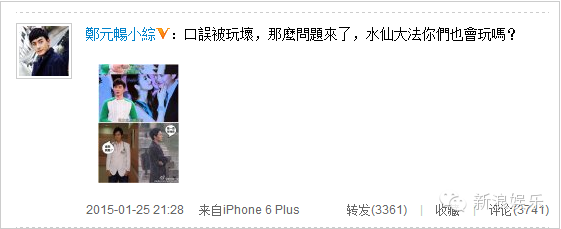 对于网友的调侃,郑元畅在微博回应称:“口误被玩坏了,那么问题来了,水仙大法你们也会玩吗?