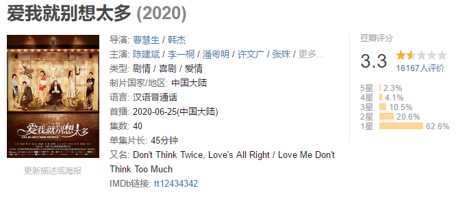然而,豆瓣只有3.3分,超过半数的网友给出了1星差评。