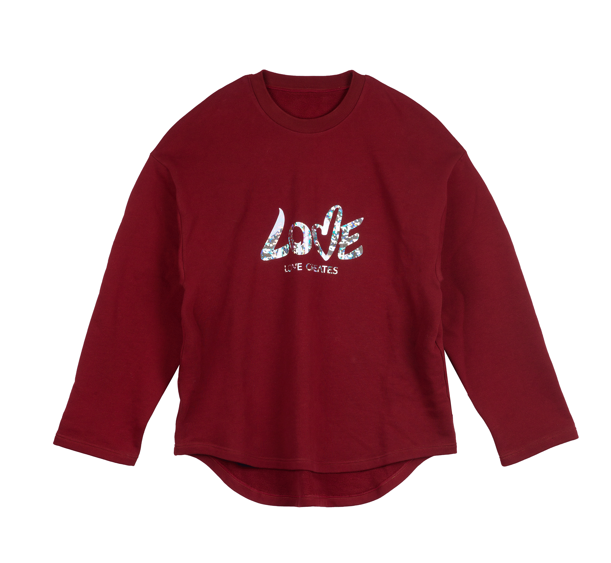上面印有“LOVE CREATES”字样的卫衣,