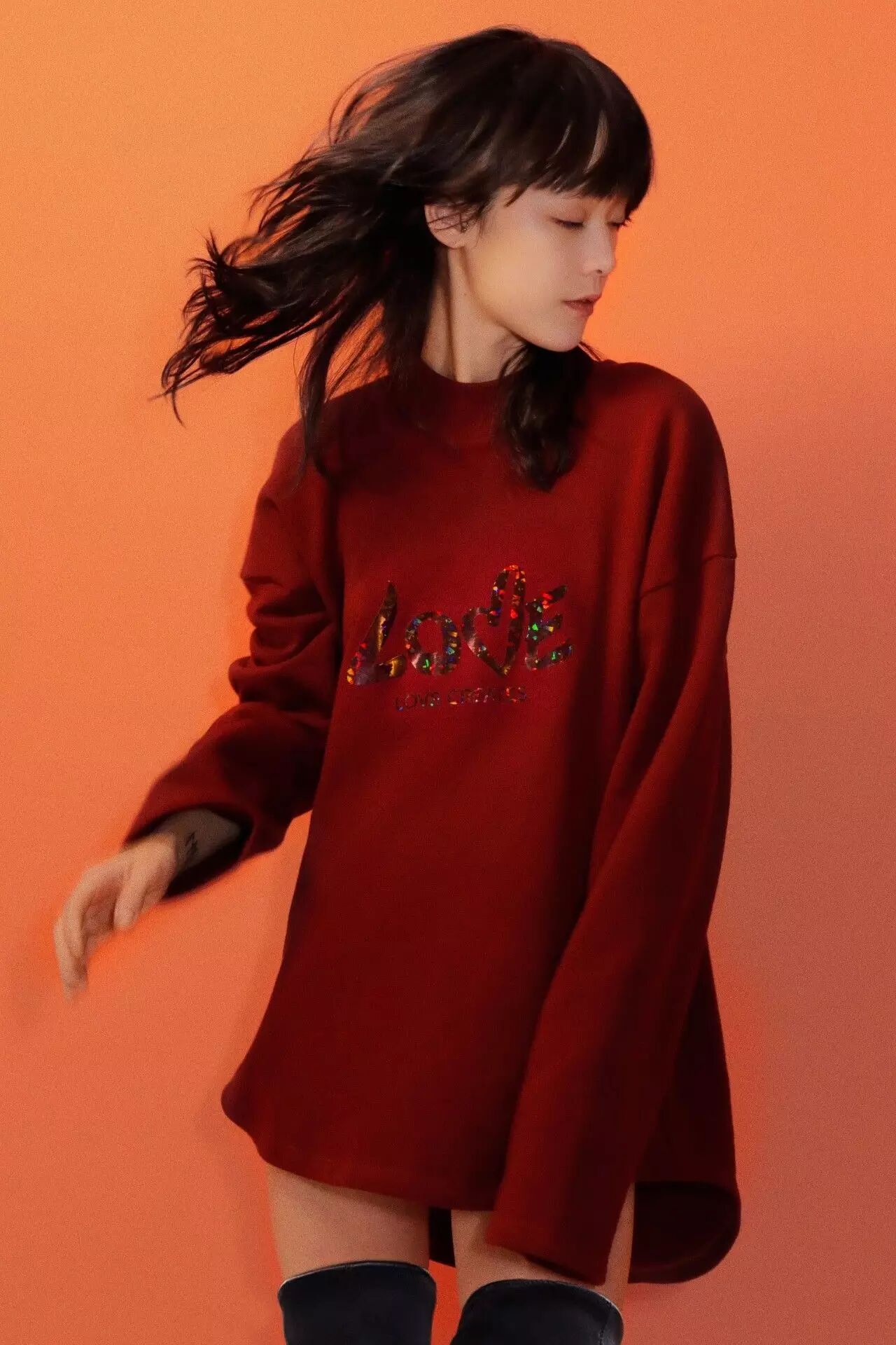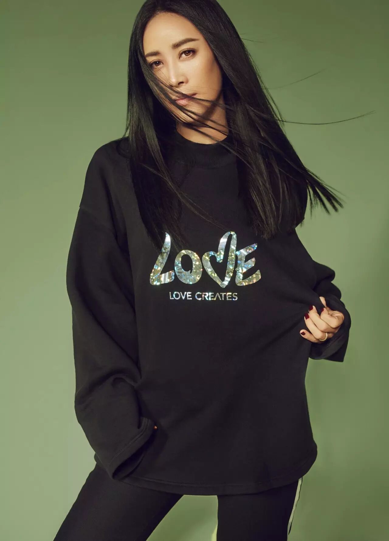 卫衣上#LOVE CREATES#的句式给大家提出了一个思考,爱的意义是什么?当然这个问题是没有固定答案的,这也正是这个问题最大的魅力,因为她没有固定的答案,就有了一万种可能,就像这件卫衣,穿在不同人身上,呈现出的感觉是完全不一样的。