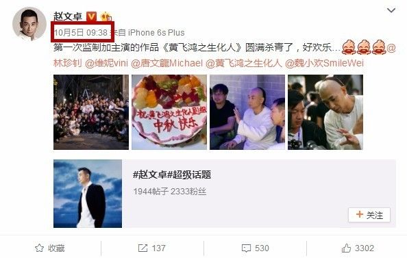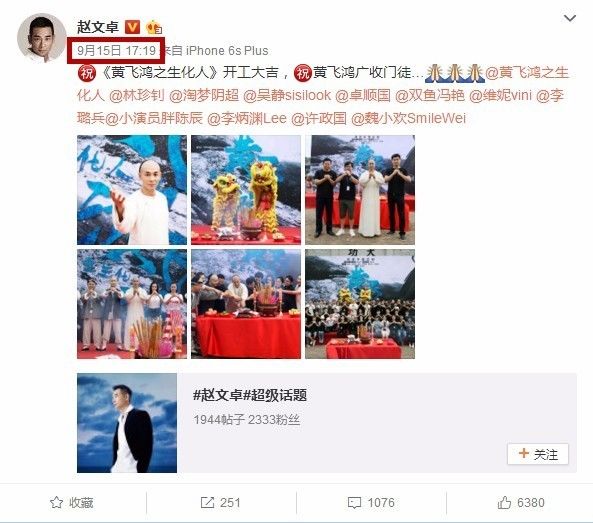 没过多久,文卓哥又发布了一则微博消息,称《黄飞鸿之生化人》已经圆满杀青。9月15日开机,10月5日杀青,只用了20天,这速度厉害了。