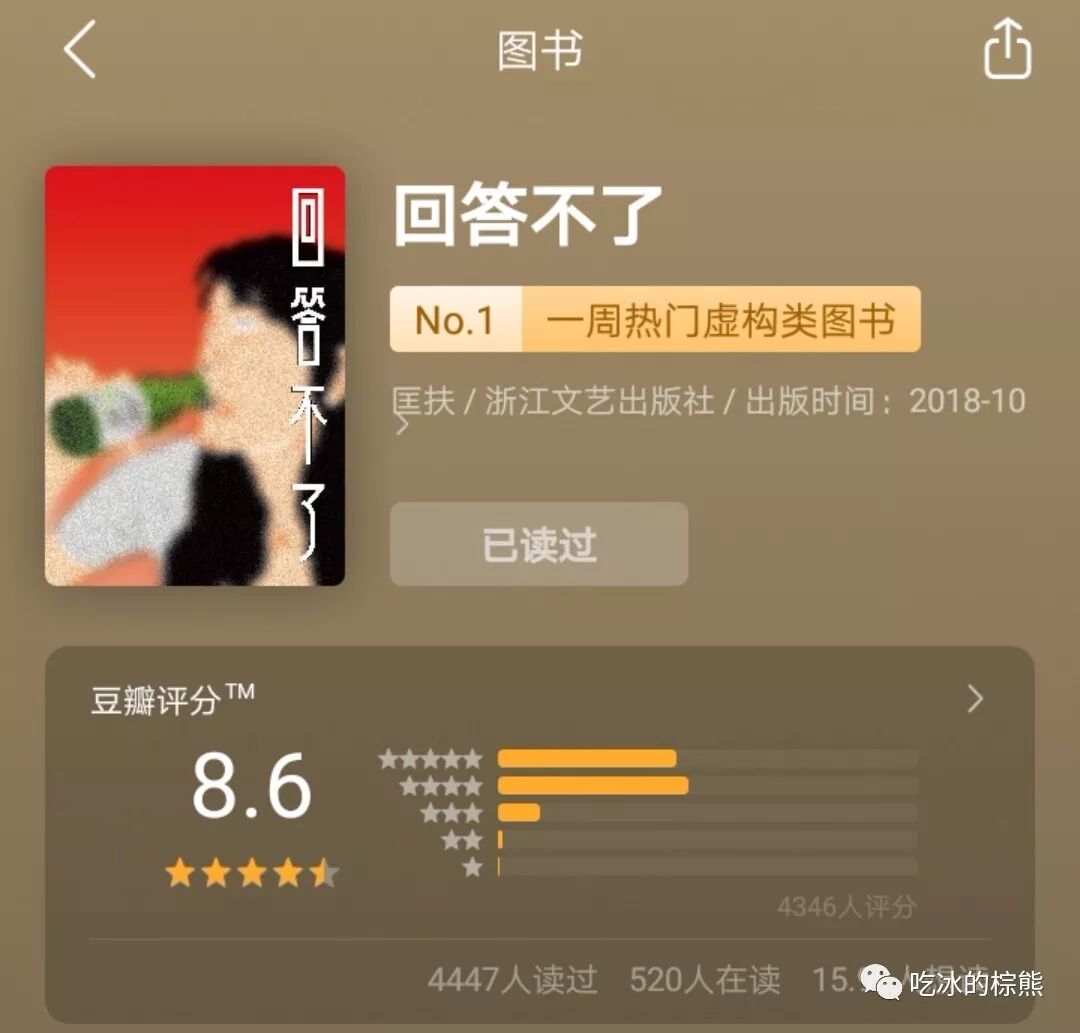 考试周绝望得让我连实体书都没有怎么读。只是温习了一遍《最好的我们》。一月份读的书大都是在微信读书上以及kindle上看的。微信读书里有个不知道怎么能得到的无限卡,app里面的书都不用花钱就可以读全本。