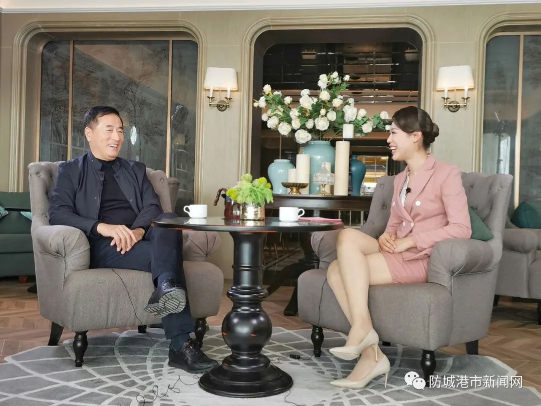 杨立新在接受我市媒体的采访。 防城港日报全媒体记者 黄艳芳 摄
