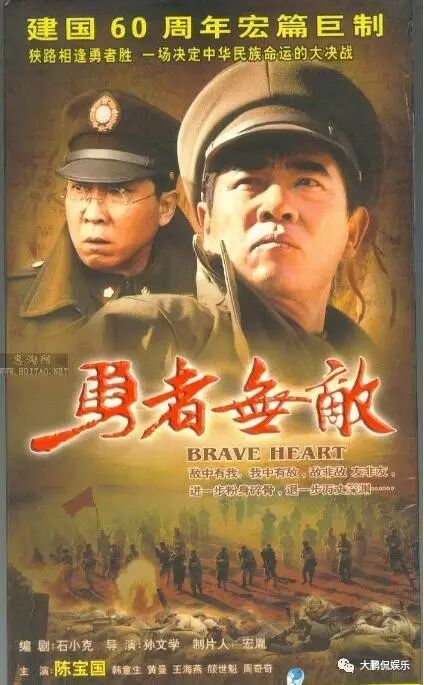 《勇者无敌》由中联华盟文化传媒投资有限公司出品,孙文学执导,石小克编剧,陈宝国、郭广平、黄曼、韩童生等主演。该剧讲述了1945年秋冬的中原大地上,国民党349旅少将旅长周啸风策动新九军军长郭今秋起义的故事。于2009年9月13日在北京卫视 、东方卫视上星播出。该剧抓住观众的审美心理,既有悬疑,还有期待;剧中环境比较特殊,一支国民党军队起义了,表面上是投诚的国民党,实际上是真正的共产党;情感部分合情合理,分寸感很强;具有典型的戏剧性结构,出乎意料之外,合乎情理之中;斗智,提升了电视剧层次,改变了收视群体年龄结构。