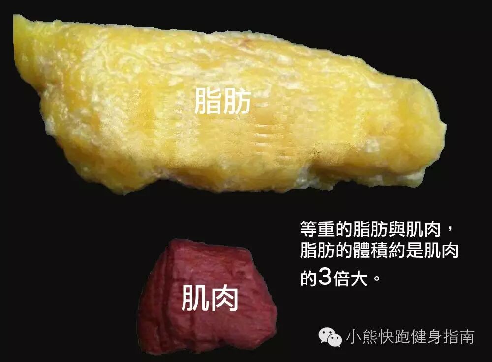 相同质量的脂肪和肌肉,脂肪的体积是肌肉的三倍。所以,相同体重的瘦子和瘦胖子,瘦胖子看起来要胖得多!