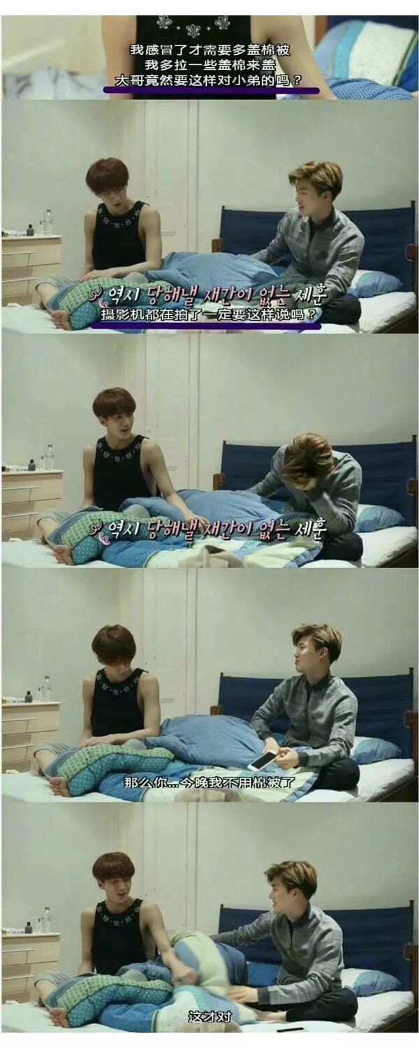 作为EXO组内年纪最小的成员,特别是和哥哥们在一起的时候,吴世勋的“奶包”属性暴露无遗了,呆萌吴怼怼请查收。