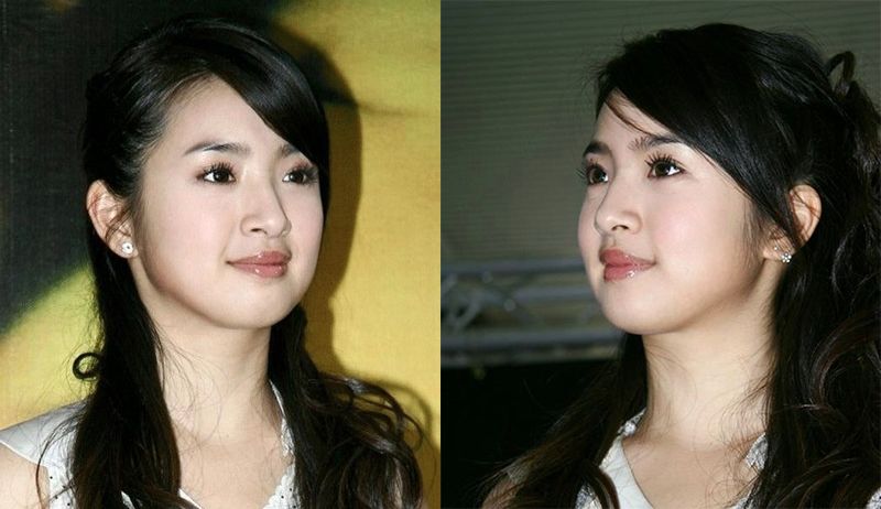 另外还值得一说的就是林依晨的嘴唇的,可以很明显地看到她的嘴唇是属于没有明显唇线的,而且因为上牙突出的关系,所以嘴唇会有点厚。