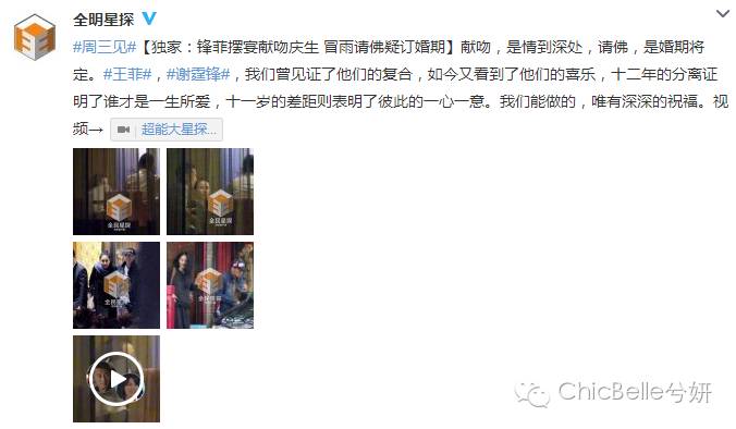 谢霆锋和王菲去年复合的新闻,轰动两岸三地的娱乐圈,当大家都等着二人婚讯时,15日微博突然流传一条在婚礼顾问公司工作的网友爆料,王菲将在2016年于大理完婚,并附上婚礼地点的优美风景照片,引网友议论纷纷。早些时候,全民星探更曝光锋菲疑似订婚期的消息