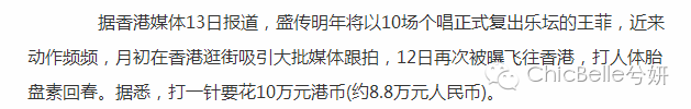 之前看到一则王菲打胎盘针8.8万的报道,无非就是想要肌肤白又Q弹 青春肌肤,一针8.8万不是谁都打得起的。