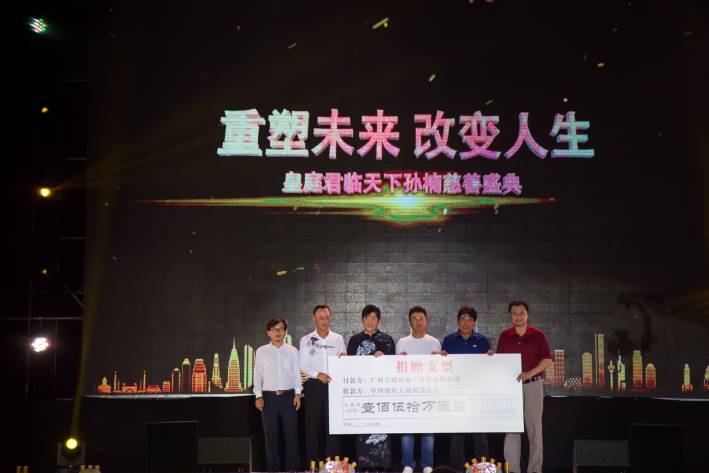 两首曲毕,郑董代表宝庭集团向中国残疾人福利基金会“集善扶贫健康行——孙楠·重塑未来”专项基金捐赠现金150万元整,郑董再向北京重塑未来肢体残疾青少年服务中心捐赠现金50万元整,用于帮助更多有需要的贫困肢残青少年。