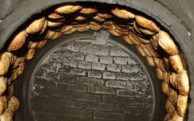 许多人认为,做草炉烧饼并不复杂,可你在现场看了定会惊叹不已。只见王师傅把双臂和手上沾少许冷水,拿起烧饼坯子在手上左右颠两下,让饼底湿润一下,由近及远,开始把一块块的烧饼向炉壁贴去,贴到炉膛顶部和最深处时,半个身子都探进去了。左、右、顶部噼噼啪啪烧饼全部贴满,王师傅拿起毛巾擦了把汗。
