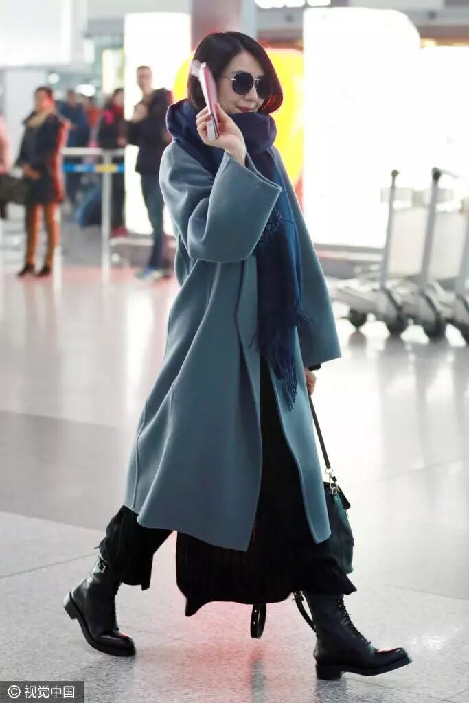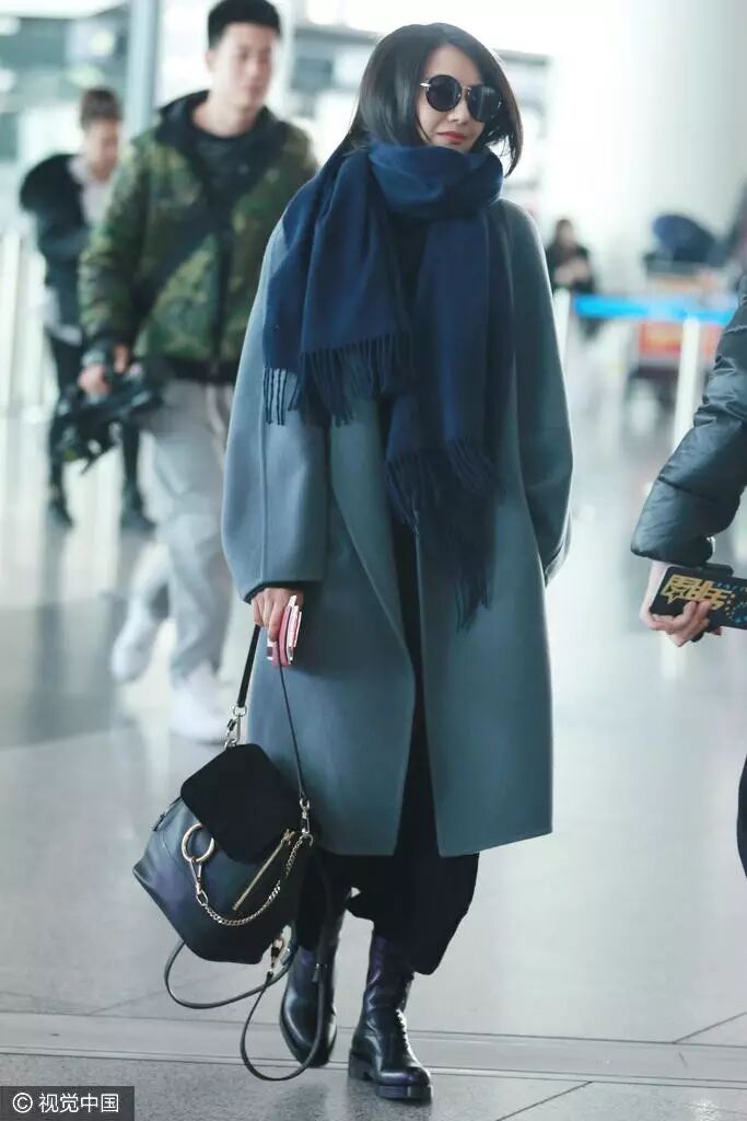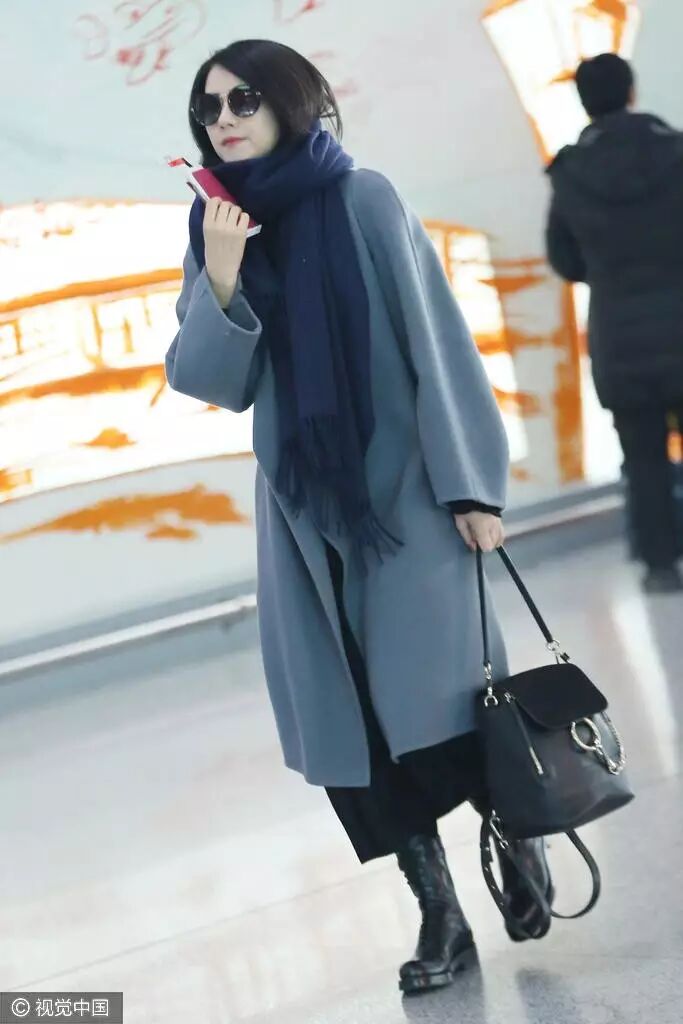 近日,“国民女神”高圆圆现身首都机场赶赴台北。她戴黑色圆框墨镜,系深蓝色流苏羊毛围巾,身穿蓝灰色呢子大衣,手拎Chloe Faye黑色麂皮拼接双肩包,下穿黑色纱裙,脚踩黑色系带马丁靴,一身装扮素雅而不失灵动,文艺美好得毫不费力。