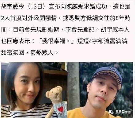 根据媒体报道,昨天艺人胡宇崴做了一件特别有意义的事情,而且为了一件事已经准备了很久,原来他带着爱侣陈庭妮爬了八个小时的山,再从山上下来,在停车场拿出了自己精心准备好的钻戒,给爱侣带上,这真是一次有意义的求婚仪式,而且别开生面。