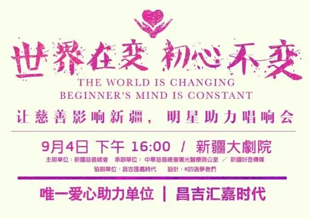 他们将在9月4日新疆大剧院唱响:“世界在变初心不变”明星助力慈善演唱会。届时将通过“丝路万象”平台为您直播现场盛况。