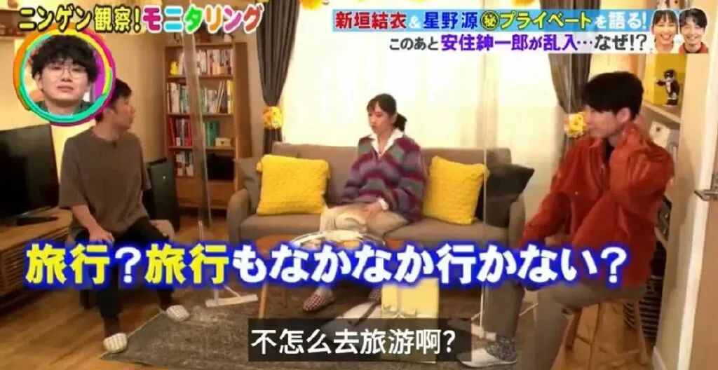 星野源和主持人去询问新垣结衣休息日怎么过,难怪当时Gakki一言未发只用动作回答,内心台词是“明明都是和你过的,还怎么回答!”