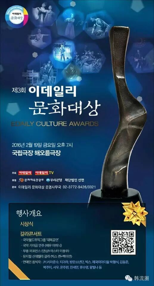 此外,“第3届EDaily文化大奖”将于2月19日晚7时在首尔国立剧场的日升剧场举行。