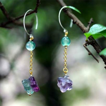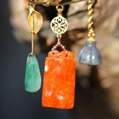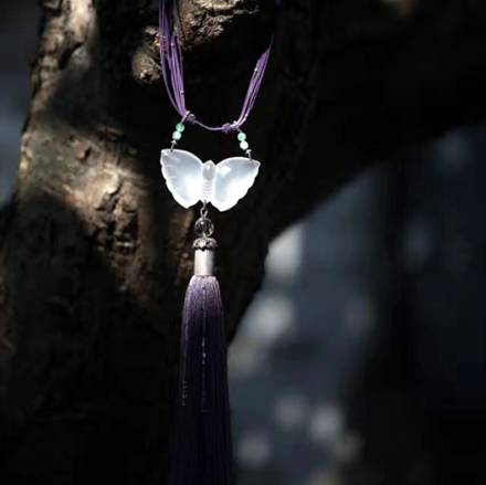 饰品推荐:带有流苏的紫色和蓝色项链挂饰,可以显得人知性又精神,而青花瓷图案或半透明翡翠手镯,则使人看起来娇俏灵气。