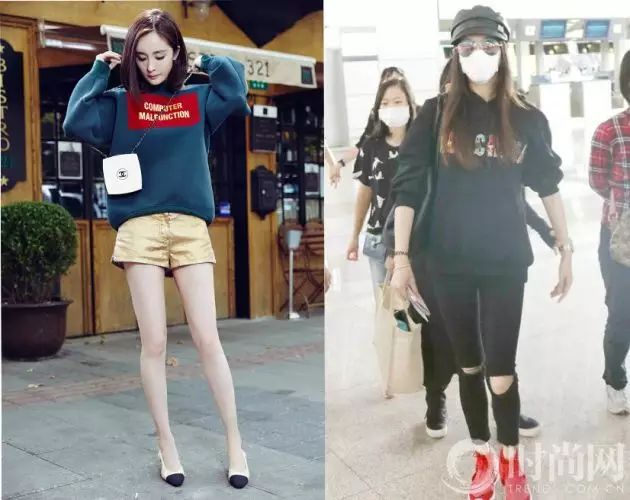 有时候真的想要仰天大啸三声:为什么这个世界这么看脸!最简单不过的白 T 穿到她们俩身上都爱发光!大幂幂完全青春高中生,糖糖背带裤减龄满分。所以人丑连白 T 都嫌弃你。