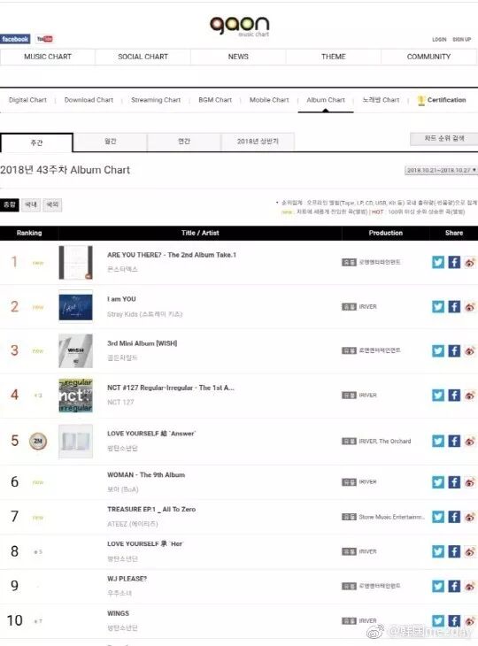 据Starship方面表示“上月22日发行的MonstaX正规专辑《TAKE.1ARE YOU THERE?》获得了第43周(2018.10.21~2018.10.27)Gaon综合专辑排行榜1位”。此前,MONSTA X从上个月30日的SBS MTV《THE SHOW》开始,在MBC every1《SHOW CHAMPION》-Mnet《M Countdown》-KBS2《音乐银行》中获得了音乐放送4冠王,展现不凡实力。