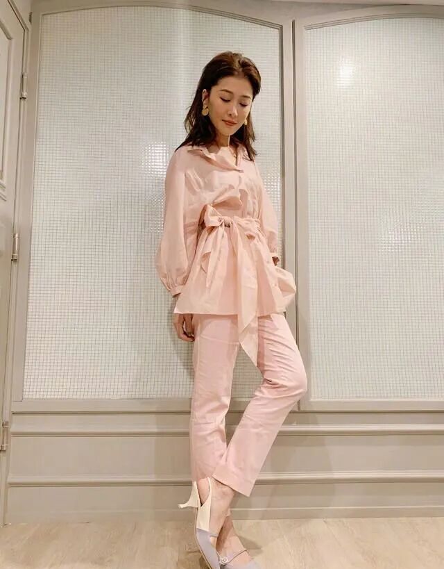 而且感觉她还是挺懂得打扮自己的,身上穿的这一套衣服选择的颜色是粉红色,虽然说这种颜色还是比较凸显的少女心的,但是穿在她的身上还是感觉到没有任何的违和感,并且下面还搭配了一双浅紫色的高跟鞋,这样一搭配显得确实会比较高级。