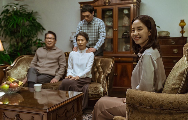 宋智孝最新恐怖片,邪教版《寄生虫》? 万达电影生活 日韩女星 2020-07-03 11:13:34 782 创作不易,用心坚持,欢迎请BaGua喝几杯爱心咖啡!打赏并支持本文 打赏并删除本文 本文作者是小万家族的@Noodles天下的影虫,都从蚀蛀全世界的电影开始刘亚仁、朴信惠主演的15禁僵尸新片《活着》已经在韩国上映一周了。 由于之前的预告片物料早已积累了起高话题度,所以尽管韩国疫情最近刚经历了反弹,但《活着》仍在首周动员了创年度纪录的120万人次。《活着》毫无疑问是疫情之下韩国电影的一剂强心剂,而在此之前,其实也有几部韩国本土类型片取得了还不错的成绩。 其中就包括宋智孝和金武烈合作的惊悚片《侵入者》。 6月4日开画的《侵入者》是韩国电影院复业后首批上映的本土新片之一,饥渴效应之下,总观影人次破50万,小小提振了一下市场。 鉴于宋智孝在国内粉丝心中的好感度(《宫》《Running Man》)以及大家对悬疑/惊悚口味的偏爱,可云观看的《侵入者》在本周也一直排在热门新片榜前列。冲着7.1的开分,陷入片荒的小万第一时间尝鲜,可惜看后颇为失望。 果然,几天后《侵入者》的评分就落到了6.7。如果再苛刻一点,小万只能给6分及格线。虽说片子质量平庸,可作为韩国整个上半年里唯一一部能拿得出手的惊悚片,它还是值得聊聊的,至少比河正宇大叔年初的那部《衣橱》要胜出一筹。 首先翻看短评会发现,大家对这部电影的好评部分主要集中在演员身上。 特别是宋智孝贡献了少有的疯魔演出,展现出在美与邪之间自由切换的成熟演技,部分“痴心”的粉丝还认为智孝欧尼可借此冲击影后。影片故事发生在一个大家庭里,男主角(金武烈 饰)在丧妻后带着女儿与父母一起生活,这时失踪二十多年的妹妹宥珍(宋智孝 饰)突然重返家中。 老迈的父母喜极而泣终迎团圆,妹妹也表现得极为体贴孝顺。但生活在一起后男主角发现父母和女儿都渐渐变得精神恍惚,妹妹还让两个陌生人住进了家里。心生疑虑的男主角决定去追查这个“妹妹”的身份及过去,结果发现了不可告人的秘密。 多年来一直以自然大方的玉女形象被粉丝认识的宋智孝,在《侵入者》中彻底丢开了过去形象的束缚,大胆做了一次魔女。她饰演的妹妹宥珍出场时是一副文弱可怜的样子,与哥哥初次见面时的那个回眸,眼神里尽是哀愁。 但当搬到家里一起生活后,宥珍转而变得笑逐颜开,不仅很会讨老人开心而且与小女儿关系亲近,反倒显得男主角是外人了。母亲高兴地说“没想到家里来了个人,就变化那么大”,宥珍则笑着接了一句“以后会改变更多的”。 这是一句暗示性的台词,接下来的宥珍就如《画皮》里的女鬼,慢慢现出“侵入者”原形。 为了防止身份暴露而杀死家里的保姆;在饭菜和香炉里掺入特制药物,不断对父母进行“催眠”; 面对怀疑自己的男主角露出带有挑衅和威胁的阴厉眼神;即使被男主角掐到快要窒息时依然如魔鬼一样瞪着眼睛笑。 片中最诡异的一幕场景(也是电影海报的出处)是男主角回到家,走进客厅时发现父母分别与新来的“保姆”和“康复师”坐在沙发上说笑(带点暧昧),宥珍在一旁浇花。 整个客厅白得耀眼,然后当宥珍回头笑的瞬间,真有一种后背发凉的感觉。 其实纵观全片也没有一场刻意惊吓(如Jump scare)观众的场面,也不包含超自然元素(如幻境、驱魔),让人感到恐惧的部分大多来自宋智孝细微多变的眼神和表情(这也是为什么恐怖片一向青睐大眼睛女演员)。 前溯的话,宋智孝的银幕处女作就是《女高怪谈3:狐狸阶梯》(2004),饰演一个沉默忧郁的高中女生,同样是以眼睛会演戏而被观众认识。《侵入者》是她时隔17年后重回惊悚/恐怖片,不夸张地说,是宋智孝的表演撑起了这部电影。 既然演员如此突出,那么影片整体评分不高的原因自然是出在了剧情、主题以及导演技巧的俗套上。 《侵入者》的故事十分模式化,属于比较常见的“鸠占鹊巢”,并且它的片名也早早进行了剧透。 举例的话,《孤儿怨》《万能钥匙》《逃出绝命镇》等被大家熟悉的恐怖片都属于这一大类。 再结合去年的热门韩影《寄生虫》,也可以找到二者间的相似调性,一栋豪宅、一大家人、一种替代,另外还有《下女》等。导演按着标准工整的剧本、用中规中矩的视听手法讲述一个关于侵入的故事,直白到都可以预知角色接下来会做什么。 当观众可以根据以往的观影经验推断出编剧/导演脑袋里想的事情时,观影惊喜又谈何而来呢?三场吃饭戏里,宋智孝坐位的变化 另外,《侵入者》后段撇去惊悚外衣,直接奔向韩国电影里近年常出现的社会议题——邪教,更给人一种匆匆收尾的无力感。 宥珍重回家庭是为了把男主角的小女儿带走,作为圣童献给教会以达成某种祭祀性质的仪式。在韩国,混杂于民间繁多的教派组织中的异端邪教确实已成为一大社会顽疾。借着惊悚片形式反映邪教问题的电影也开始出现,比如去年李政宰主演的《娑婆诃》。 《侵入者》尝试用社会惊悚片的平实风格继续挖掘这一问题,出发点当然是很好的,但技巧与形式上的陈旧拉了后腿,单凭演员演技强撑,实在可惜。 剩下一个可称之为亮点的设计,就是编剧并没有将宥珍设定为无血缘关系的陌生人,她真的是走失多年的亲妹妹,只不过早已被邪教组织洗脑并成为继承者。 片中男主角自始至终不相信她是亲妹妹,但妹妹始终知道那