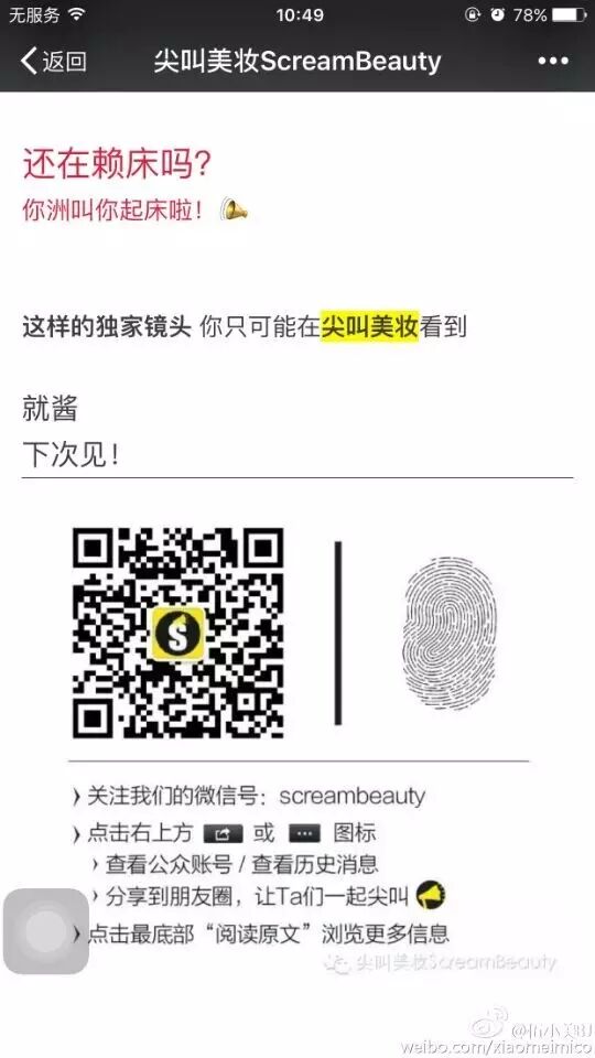 有没有满足大家呀!官博可是福利多多呢,想要尽早知道洲洲的动态,大家认准下面尖叫美妆的官方微信哦!
