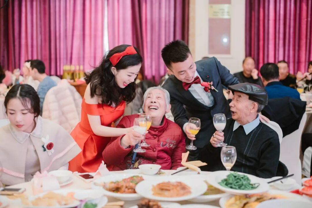 晚宴环节新娘新郎一起敬酒的时候蛮适合的~