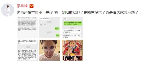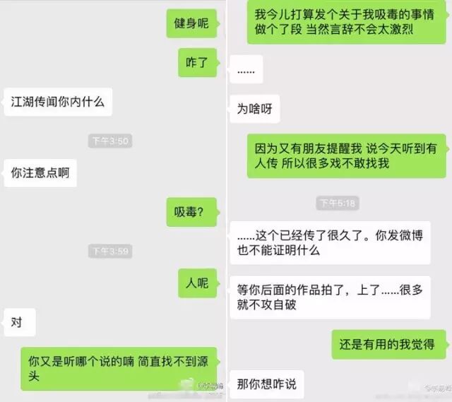 微博中,李易峰晒出与友人的聊天记录,朋友提醒他在饭桌上又听到了关于他吸毒的谣言,这令李易峰十分生气,决定发声明澄清事实,痛斥造谣传谣者。
