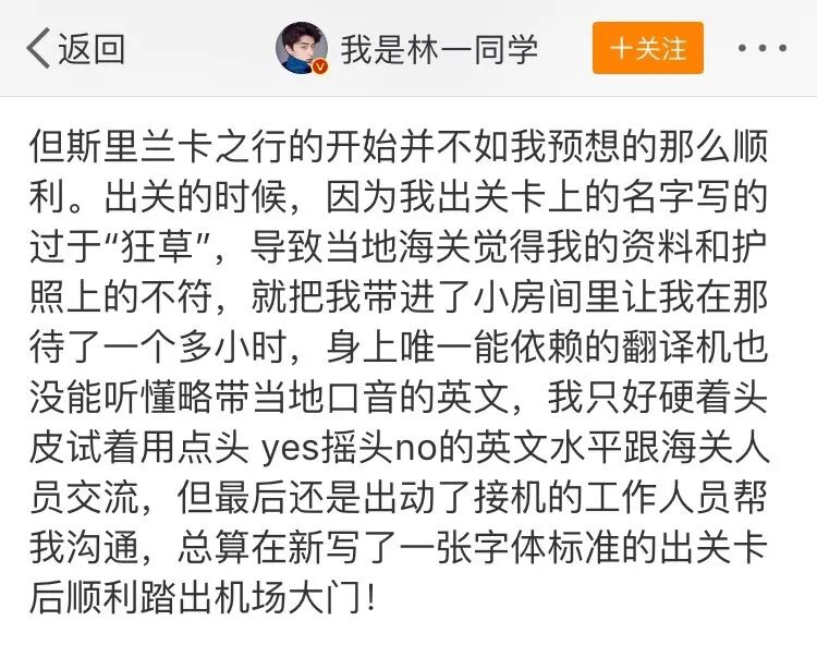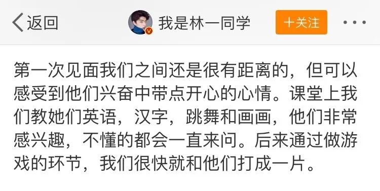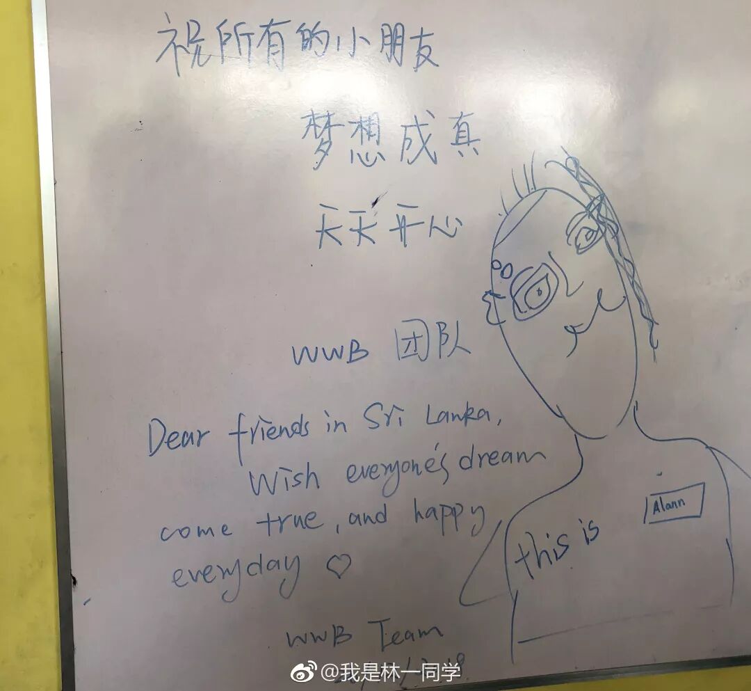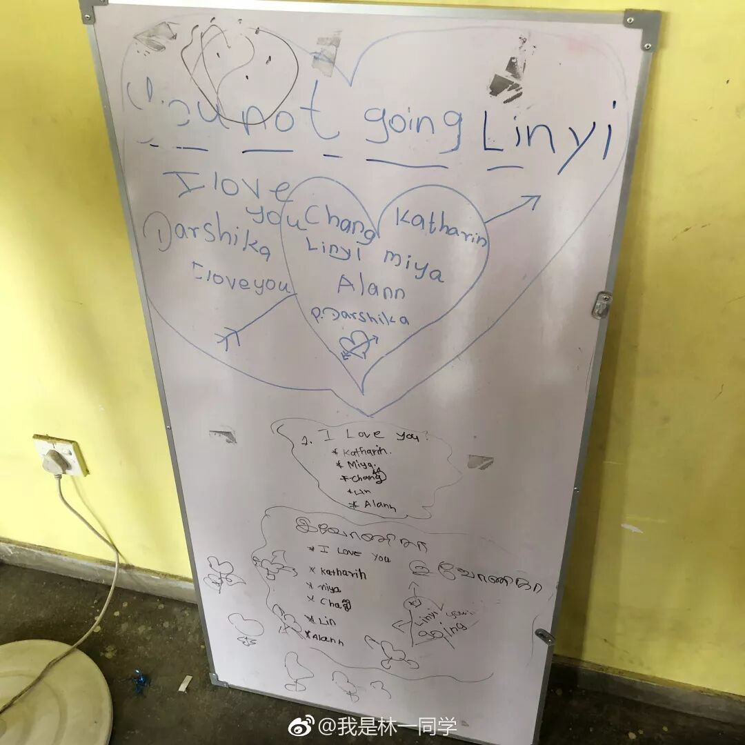 “虽然我们语言不通,但却常常四目相对一起傻笑,越笑越开心,哈哈哈哈”林一在微博中写道。