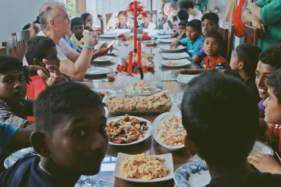 圣诞当天,住家的mama为远道而来的志愿者、当地老师、孩子与家人准备丰盛的圣诞大餐,与大家一起进行饭前祈祷,一起分享关于斯里兰卡有趣的故事,和自己的一些亲身经历。