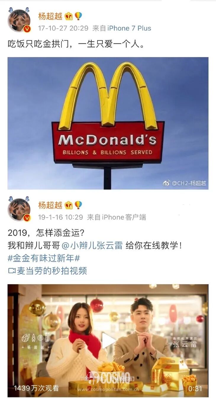 这已经不是杨超越第一次说什么成什么了,喜欢吃麦当劳,就跟麦当劳合作。