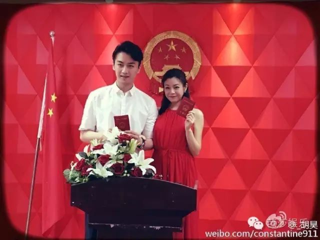 昨天两人就兴高采烈的把结婚证给领啦!陈妍希一袭红裙笑的别提多幸福了!