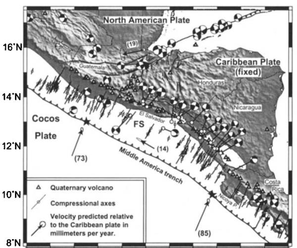 而此次震源的南段历史地震几乎全部为右旋走滑型地震,这主要受加勒比板块的旋转与 Cocos 的俯冲同时作用而产生。