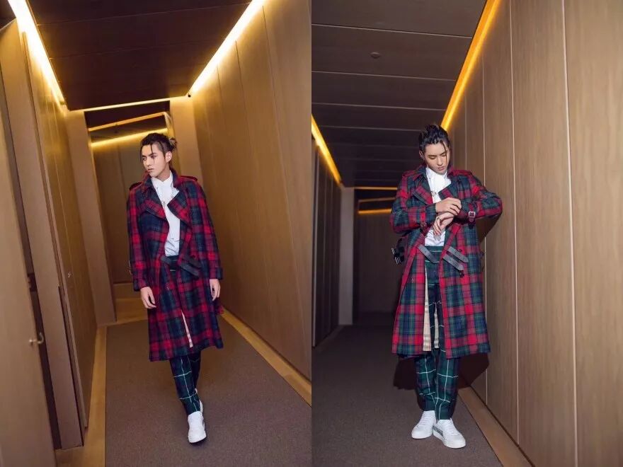 身为Burberry的全球代言人,吴亦凡自然是要给格纹打电话。据说这件是Burberry九月时装秀特别定制风衣,好看好看。