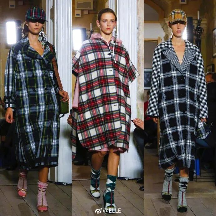 Burberry作为使用格纹的老前辈,在今年秀场上也自然少不了格纹元素出现。走秀款大多采用了大面积的传统苏格兰格纹。