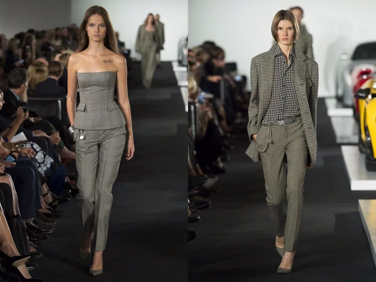 相比较Balenciaga而言,Ralph Lauren秀场中的格纹元素就显得稳重多了,下图左一的那件,娜扎小姐姐还穿着参加新剧宣传会了。嘻嘻,老好看了。▼