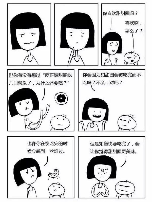 甜甜圈不会永远存在,可有机会品尝它的美味,享受世界的美好,不就很棒了吗?”