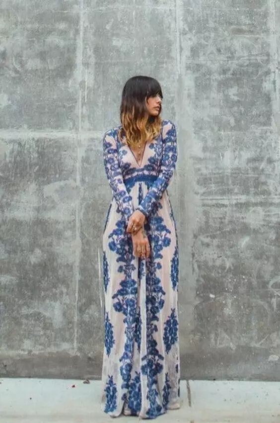 有呢,宝蓝色配小碎花,更显优雅古典。