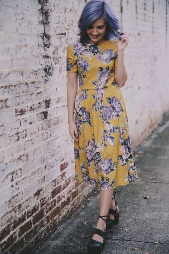 深蓝色的碎花裙子比其他颜色都更低沉,