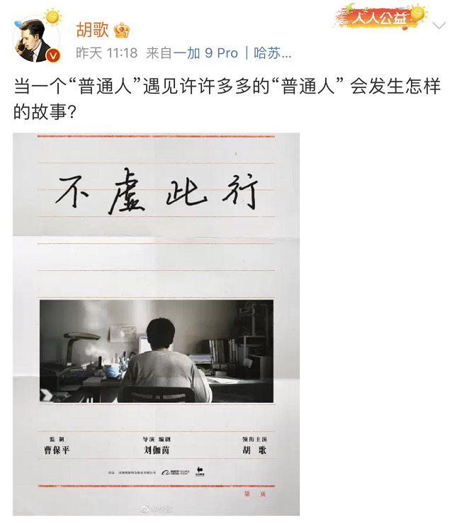 就在昨天,被称为“娱乐圈失踪人口”的胡歌在社交平台发布了动态: