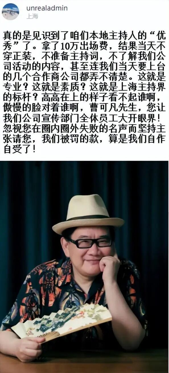如果说此时的曹可凡只是口碑有些崩盘,那么在2016年以后,他的人品也开始遭到质疑。
