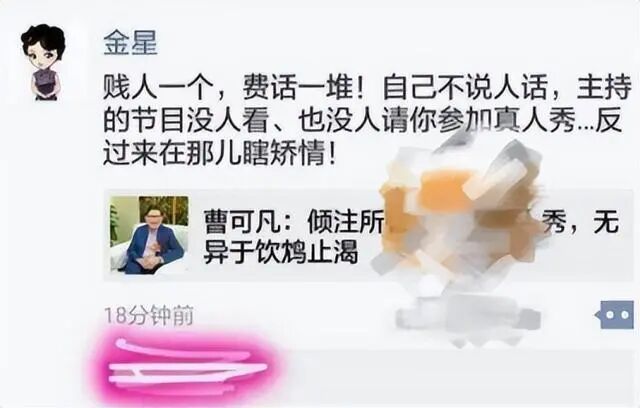 曹可凡的言论刚说完不久,金星的朋友圈就被媒体曝光。