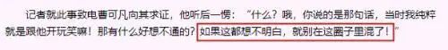 他在接受采访时表示,不知道一个资深的节目主持人为什么会这么轻易地用如此严重的,可以说是质疑他人人品的一个词去评价自己。