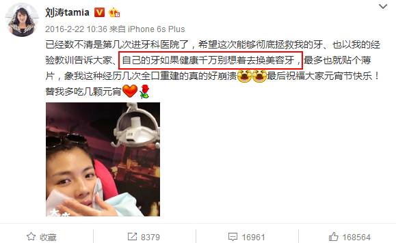 而且这种美牙的方式是完全不可逆的。自己的牙齿磨小了就永远不会再长出来,既然做了就得跟你一辈子。其中可能要经受的痛苦也只有自己能感受到,喏,别忘了来自前辈刘涛的经验。