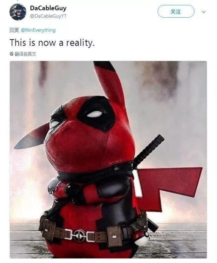 在官方公布中,明确了死侍的扮演者将要为主角皮卡丘配音。难以想象这贱贱的大叔音融合了动漫中只会说“皮卡”和“啾”会产生怎样奇妙的化学反应。难怪各位网友直呼他们撕裂了次元壁。