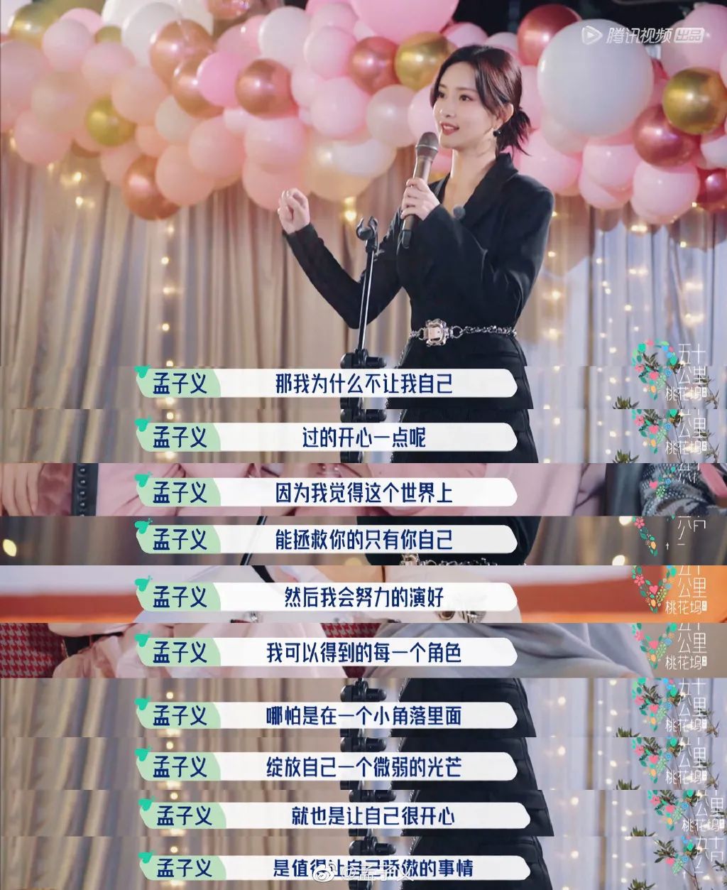 《五十公里桃花坞》播出后,我能感到风评好像发生了点变化。以前一打开微博都是一边倒的各种骂,现在别人骂我的时候,会有人帮我说说话,偶尔还会有人说“觉得孟子义挺可爱的”。他们可能真的觉得我挺好的。但大家不需要在网络上说,免得溅自己一身血——顶着这种压力替我说话,我很感动。