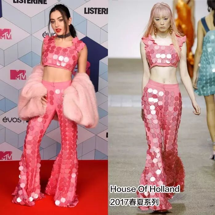 不知道是不是太冷的关系,洗茶妹Charli XCX也戴上了皮草,但是这一身廉价的亮片造型真的让她看起来头很大▼